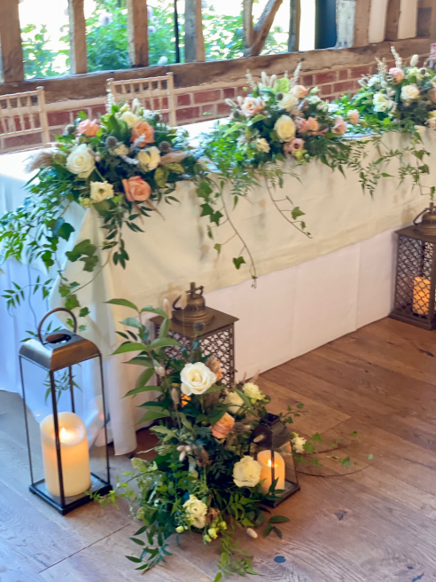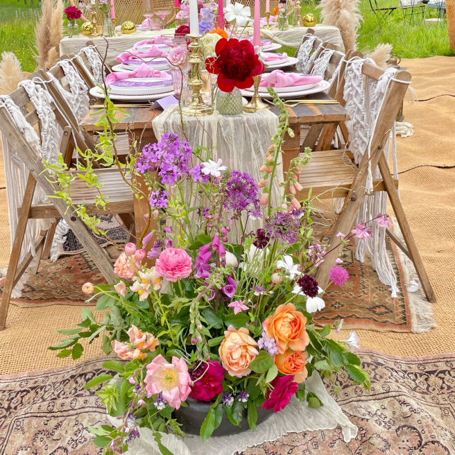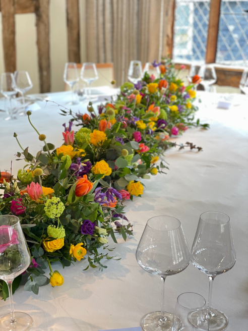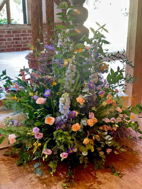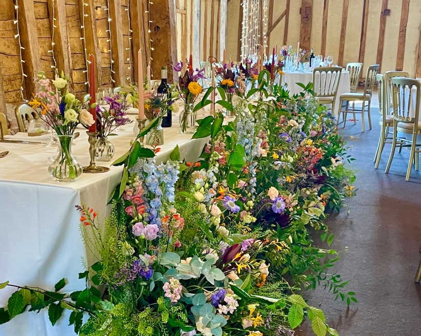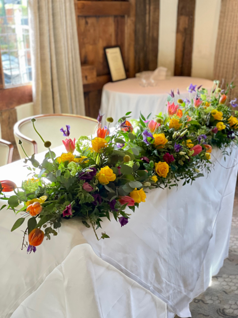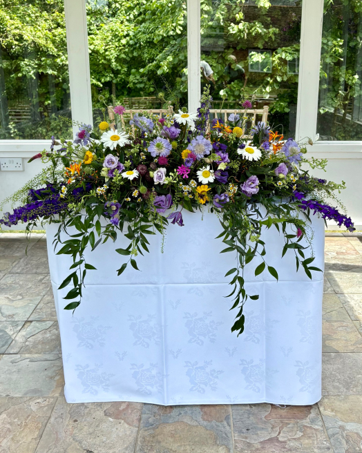 Lush, abundant wedding florals filled with colour, texture, and relaxed summer elegance.