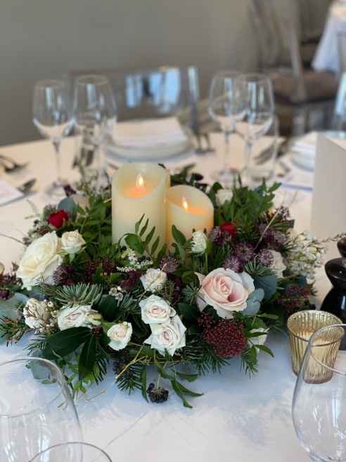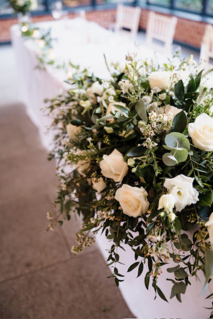Beautiful winter wedding florals with soft neutrals, evergreens and timeless seasonal detail.